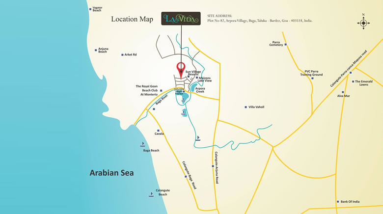 Apart from the name, the style and design of La Vida, is inspired from the creative thought of ancient Spanish architects. La Vida is a beautiful class="pro" landmark project located amidst the quiet and serene village at Arpora hills near Baga beach. The sun, sand and water of north Goa has its arms stretched wide open to three sides: Baga beach (Arabian Sea), Baga River and Arpora creek, promising a breath taking view all the time.